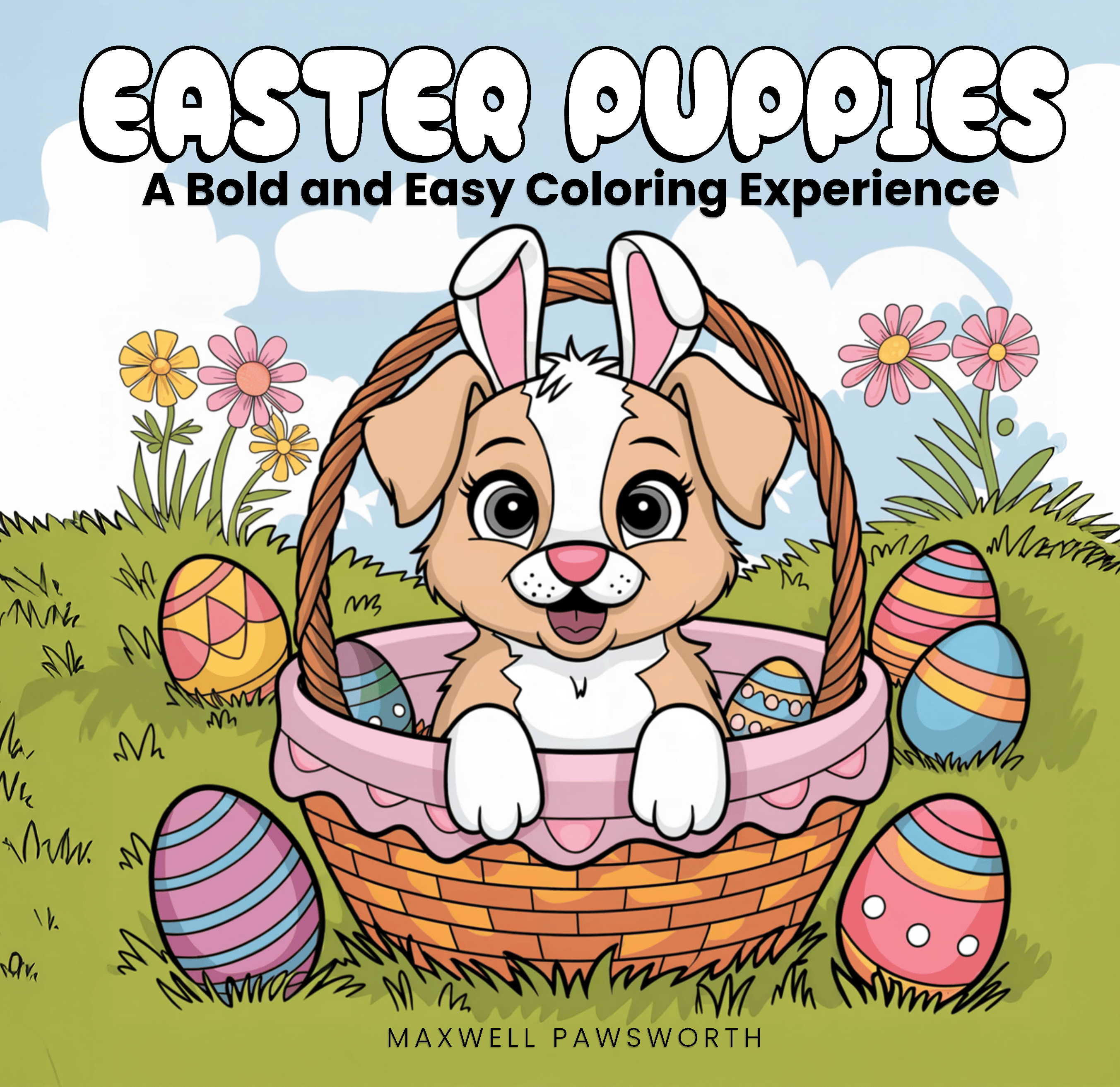This Bold and Easy coloring book features 50 pages of adorable puppies celebrating Easter in charming springtime settings. From playful pups hiding in Easter baskets to sweet moments among blooming flowers, every page invites you to slow down, de-stress, and enjoy the moment.