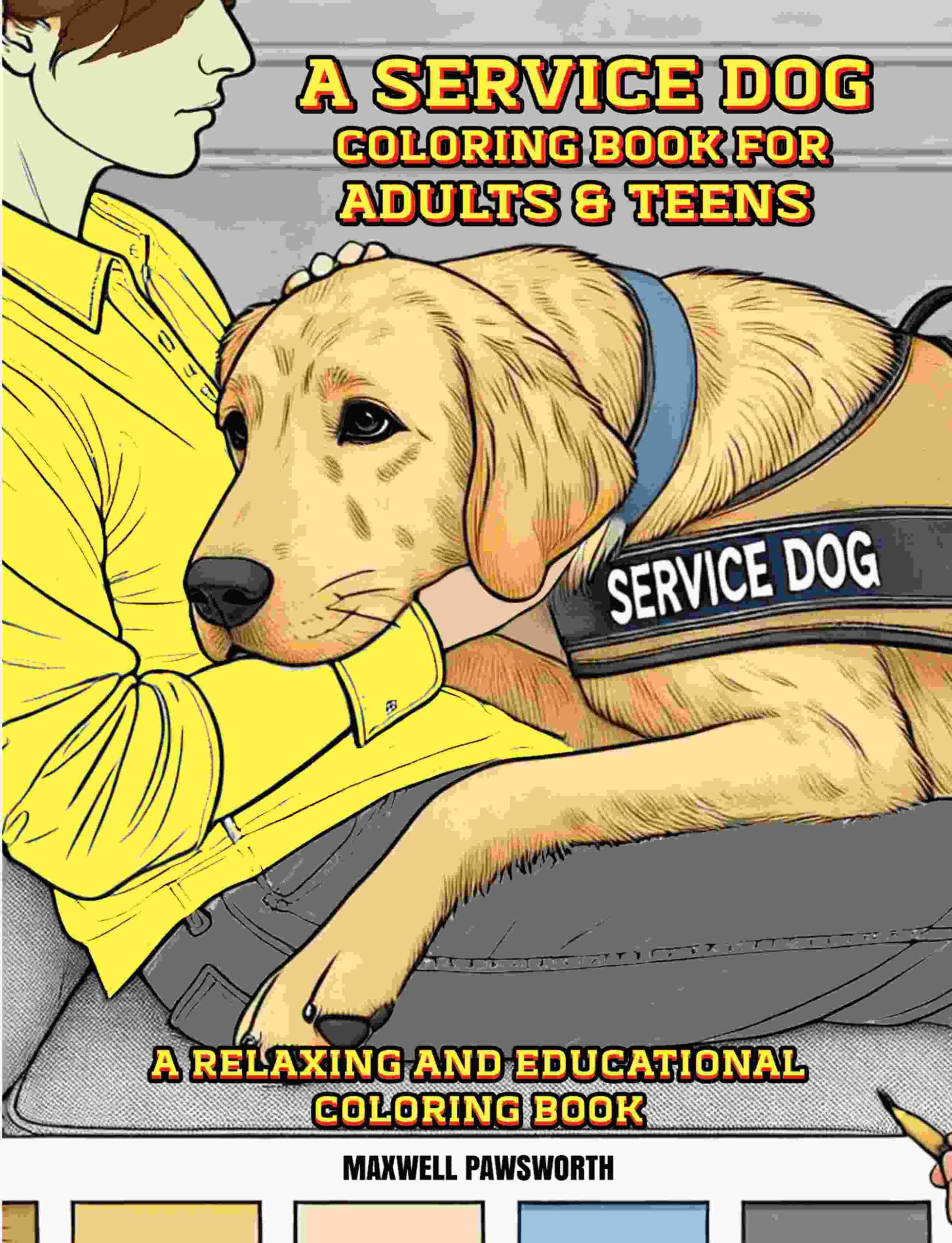 Discover the noble world of service dogs with A Service Dog Coloring Book For Adults & Teens by Maxwell Pawsworth. This unique book blends relaxation and education, featuring 50 detailed illustrations showcasing the incredible roles of service dogs.